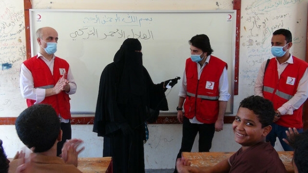 قدمت جمعية الهلال الأحمر التركي، اليوم الإثنين، 45 سبورة، لعدد من المدارس الحكومية في محافظة عدن، جنوبي اليمن.