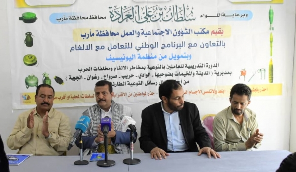 دشن مكتب الشؤون الاجتماعية بمحافظة مأرب، الاثنين، الدورة التدريبية الخاصّة بتأهيل فرق المتطوعين؛ للتوعية المجتمعية بمخاطر الألغام ومخلفات الحرب.