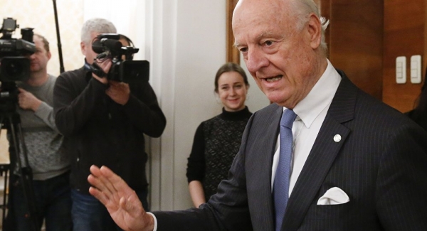 مبعوث الأمم المتحدة الخاص لسوريا ستافان دي ميستورا للصحفيين يوم الثلاثاء إن الحكومة السورية قبلت اقتراحا روسيا لوقف إطلاق النار في منطقة الغوطة الشرقية المحاصرة التي تسيطر عليها جماعات معارضة.