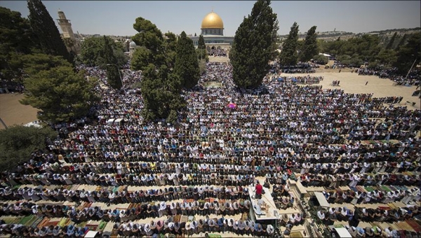 وتولت المئات من الحافلات نقل المصلين من الضفة الغربية والمدن والبلدات العربية داخل الخط الأخضر إلى المسجد.