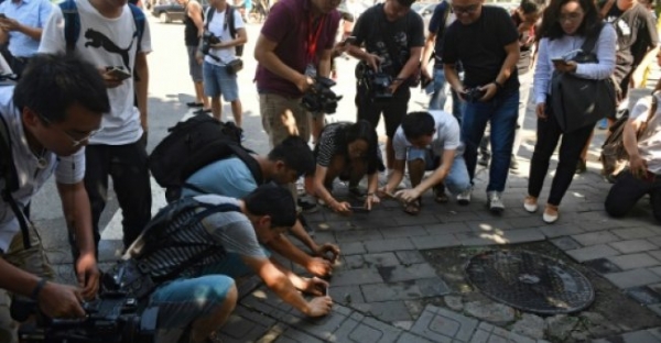 واظهر تسجيل فيديو تم نشره تصاعد الدخان امام المجمع الدبلوماسي في العاصمة الصينية فيما كانت الشرطة تضرب طوقا امنيا في المنطقة.