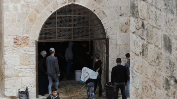 وكان شبان فلسطينيون فتحوا أبواب باب الرحمة أول من أمس (الجمعة) ودعوا المصلين إلى أداء الصلاة في المبنى.