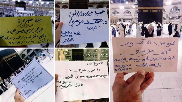 بعد صلوات غائب تمت في أنحاء العالم على روحه، تداول نشطاء بمنصات التواصل الاجتماعي، الأربعاء، صورا لأشخاص أعلنت أداء عمرة عن محمد مرسي، أول رئيس منتخب ديمقراطيا والذي وافته المنية الإثنين.