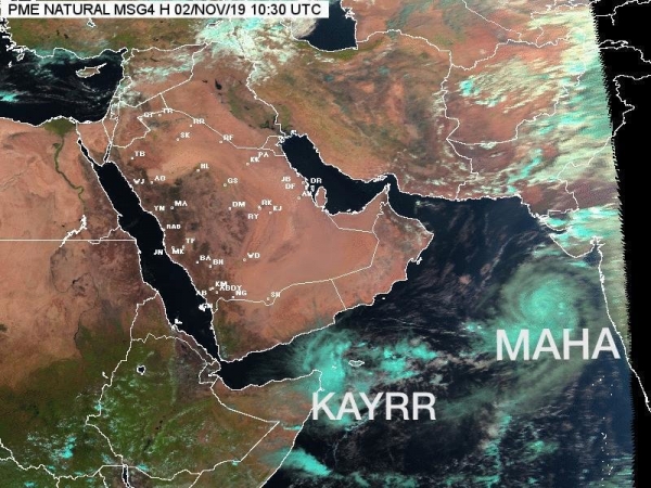 أعلنت الأرصاد الجوية في السعودية والإمارات وسلطنة عمان، اليوم الأحد، أن العاصفة المدارية "مها" التي تتمركز حاليا شرق بحر العرب، تتطور إلى إعصار مداري من الدرجة الأولى.