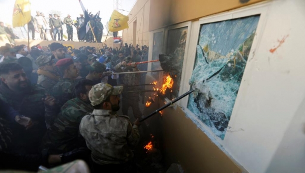 اتهم الرئيس الأميركي دونالد ترامب إيران بتدبير اقتحام السفارة الأميركية في بغداد من قبل محتجين على القصف الأميركي للحشد الشعبي، فيما حذر وزير خارجيته مايك بومبيو القادة العراقيين من أن بلاده ستحمي الأميركيين في العراق.