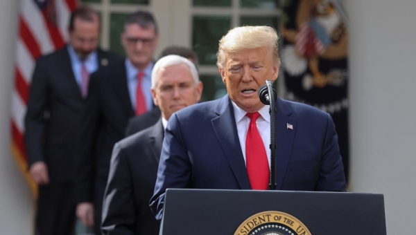 أعلن الرئيس الأمريكي دونالد ترامب حالة الطوارئ الوطنية، الجمعة 13 مارس/آذار 2020، بسبب فيروس كورونا سريع الانتشار، ليفتح المجال أمام توفير مساعدات اتحادية قال إنها قد تبلغ نحو 50 مليار دولار للمساعدة في احتواء المرض، وجاء ذلك في مؤتمر صحفي لترامب بالبيت الأبيض.