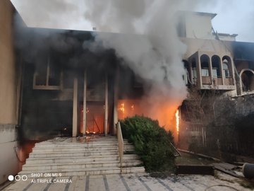 الشهود أضافوا أن المحتجين أقدموا على تكسير محتويات مبنى القناة، قبل أن يضرموا فيه النيران، ويمنعوا فرق الدفاع المدني من إخماده.