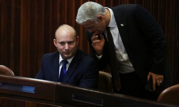 ونقلت وكالة رويترز عن مكتب الرئيس الإسرائيلي إن نفتالي بينيت، ويائير لبيد سيتناوبان على تولي منصب رئيس الوزراء.