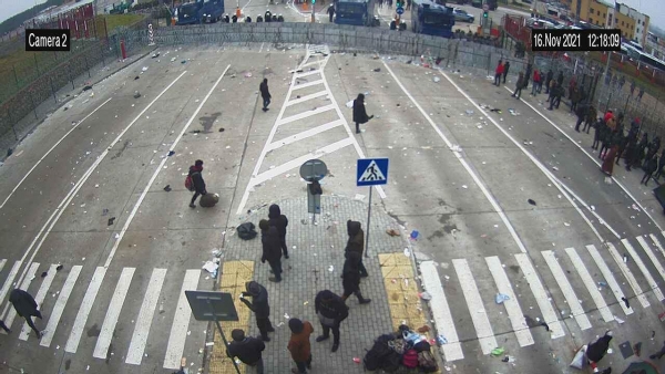 يُظهر أحد الفيديوهات عدداً من المهاجرين وهم يقتربون من السياج الحدودي للقوات البولندية في محاولة لإزالته، وكان بعضهم يحمل أجزاءً من الشجر فيما رمى آخرون الحجارة، للتعبير عن غضبهم من منع بولندا لهم بالعبور.