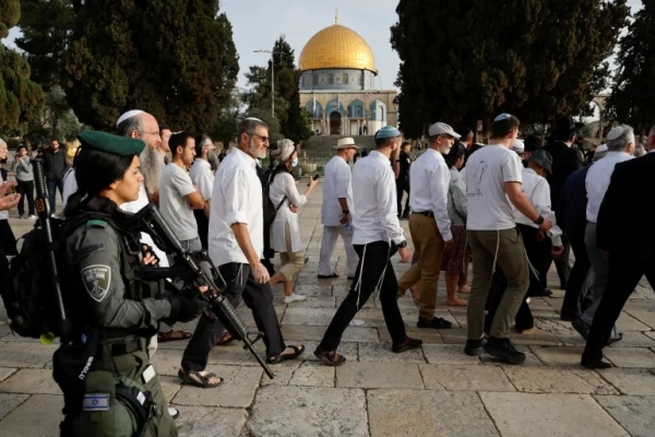 ويشهد المسجد الأقصى سلسلة انتهاكات واقتحامات من المستوطنين بحماية شرطة الاحتلال، في محاولة لفرض السيطرة الكاملة على المسجد وتقسيمه زمانيا ومكانيا.