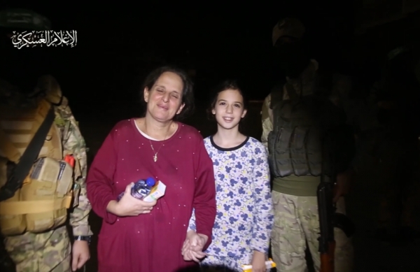 وأظهرت المشاهد بعض المحتجزين الإسرائيليين من النساء والأطفال، وهم يودعون مقاتلي القسام والابتسامة على وجوههم.