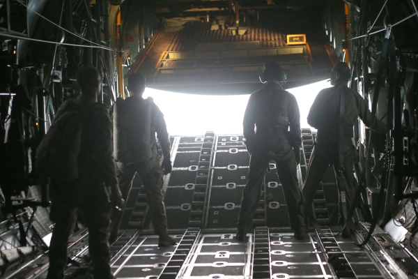 بعد مرور هذه الدقائق، تم فتح الباب الخلفي للطائرة، وإزالة الأربطة عن صناديق المساعدات، وأعطى ضابط إشارةً لزملائه، فتم إسقاط الصناديق على منطقة شمالي القطاع، بينما عيونهم جميعا تراقب فتح مظلات الصناديق، وعندما اطمأنوا على ذلك أُغلق الباب.