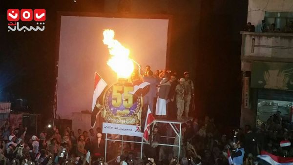 احتشد الآلاف من المواطنين في مدينة تعز، مساء اليوم الاثنين، لإحياء حفل ايقاد شعلة العيد الوطني الـ55 لثورة 26 سبتمبر المجيدة.