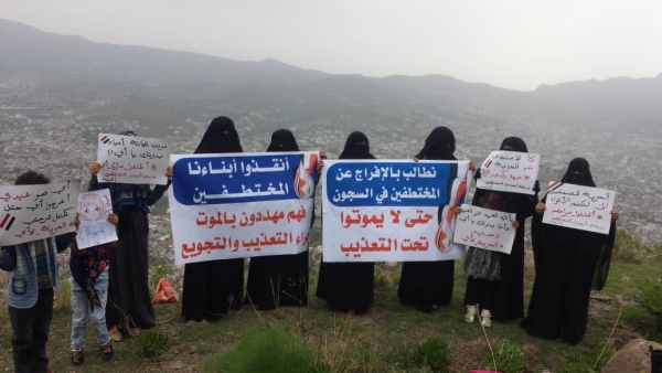 وناشدت المحتجات المنظمات الدولية، والأمم المتحدة ومبعوثها الأممي وضمير الانسانية، والمنظمات الحقوقية سرعة التدخل لما يحدث لأبنائهم المختطفين من إخفاء قسري وما يترتب على إخفائهم من أضرار جسدية ونفسية.