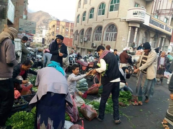 احتج، العشرات من بائعي الخضروات، في مدينة تعز، اليوم السبت؛ للمطالبة بحمايتهم مما وصفوهم بـ"المتهبشين".
