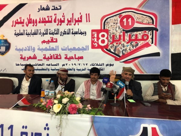 نظم طلاب كلية التربية والعلوم التطبيقية في محافظة الجوف، صباح اليوم الثلاثاء، صباحية شعرية ثقافية، تحت شعار 11 من فبراير ثورة تتجدد ووطن يتحرر.