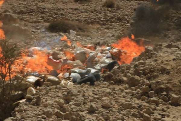 وقال "إعلام المنطقة العسكرية الأولى"، "إن كمية الحشيش والحبوب المخدرة "20 طن" التي تم إتلافها تعتبر أكبر كمية مخدرات تم ضبطها على مستوى اليمن.