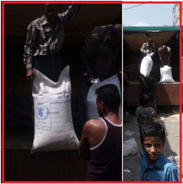 وشاهد عدد من المواطنين، متنفذون حوثيون وهم يبيعون المساعدات في أحد شوارع المدينة، بعد أسابيع من إتلاف مواد أخرى حرمت منه مئات المحتاجين.