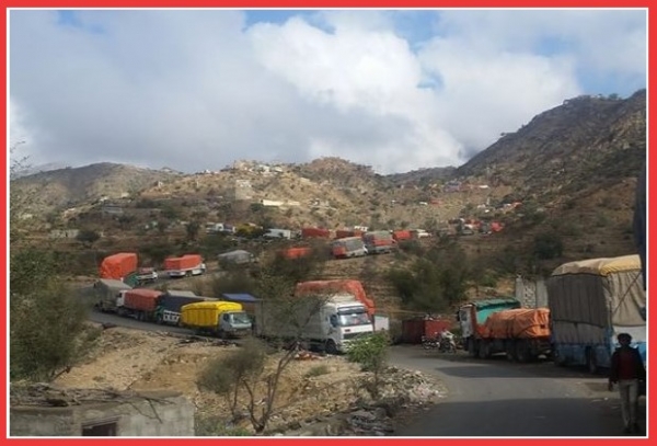 ويوجد العشرات من الشاحنات موقوفة على الطريق الممتد في منفذ القبيطة وحيفان، الرابط بين مناطق سيطرة الحكومة الشرعية والحوثيين.