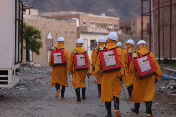 بدأت الفرق الصحية الميدانية التابعة لمؤسسة الشيخ حمود سعيد المخلافي اليوم الخميس، عملية الرش والتعقيم ضمن الإجراءات الاحترازية لمواجهة خطر تفشي وباء كورونا.