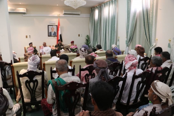 جاء ذلك خلال لقائه شيوخ مرجعية قبائل حضرموت الوادي والصحراء بحضور قائد المنطقة العسكرية الأولى اللواء الركن صالح محمد طيمس ووكيل أول وزارة الداخلية اللواء محمد سالم بن عبود، وفق موقع وزارة الداخلية.