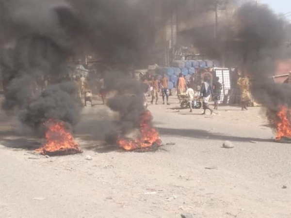 وأضافت أن المحتجين أضرموا النيران في الإطارات وأوقفوا حركة السير في الخط الرئيسي الرابط بين محافظتي لحج وعدن.
