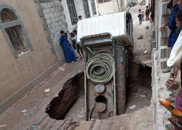 مصادر محلية اكدت لـ يمن شباب نت": "تعرض شاحنة لنقل المياه للسقوط في أحد مستنقعات الصرف الصحي في حي الجفينات بمنطقة شملان بمحافظة صنعاء مساء أمس الخميس".