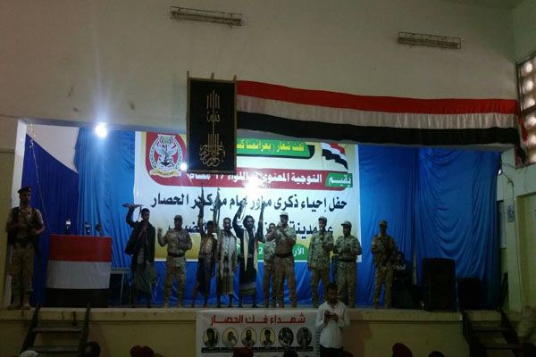 وفي الحفل الذي أقيم ،اليوم الأربعاء، تحت شعار "بعزائمنا كسرنا الحصار "حضر العديد من القيادات العسكرية كما تخللته العديد من الفقرات الفنية والانشادية والشعرية.