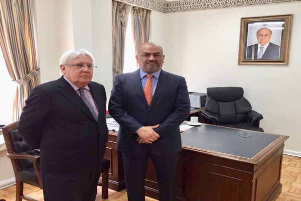 وكتب اليماني عبر حسابه على موقع تويتر تغريدة قال فيها" التقيت قبل قليل السيد مارتن غريفثس مبعوث الأمين العام إلى اليمن في بداية مشواره للإسهام في جهود استعادة الدولة ووقف التدخلات الإيرانية عبر أذرعها الحوثية ووضع نهاية للحرب التي خلفت واحدة من أكبر الكوارث الإنسانية في العالم".