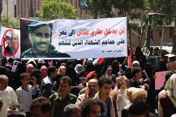 ويأتي هذا التصعيد ضد عودة طارق بعد تسلمه مئات المدرعات من قبل قيادة التحالف العربي لتتحول إلى تظاهرات في شوارع تعز.