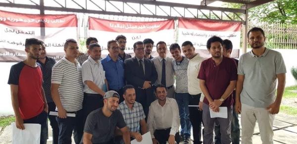 وفي بداية اللقاء رحب السفير باحميد بالجميع في وقفتهم الاحتجاجية مؤكدا ان السفارة اليمنية ستبقى بيت جميع اليمنيين وتتعامل بروح الدولة والمسؤولية مع كل اليمنيين دون اي تمييز.