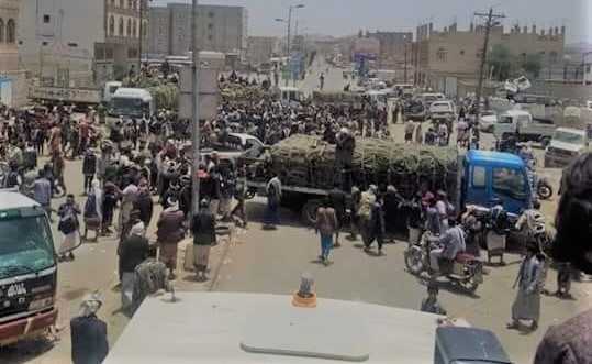 قطع متظاهرون، في مدينة رداع، الطريق العام الرابط بين العاصمة صنعاء، ومحافظة البيضاء اليوم السبت احتجاجا على فرض جماعة الحوثي الانقلابية ضرائب جديدة على تجار وبائعي القات، وسط حالة استياء ورفض واسعة في أوساط المواطنين.