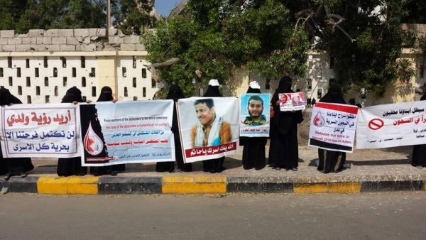 نظمت رابطة أمهات المختطفين والمخفيين قسرا،ً بمحافظة عدن، وقفة إحتجاجية، صباح اليوم الإثنين، أمام قصر المعاشيق؛ للمطالبة بإظهار وإطلاق سراح جميع المخفيين قسراً.