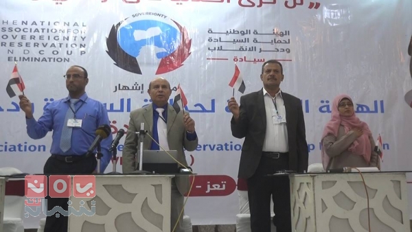 أُعلن، اليوم الجمعة، في محافظة تعز (جنوبي غرب اليمن)، حفل اشهار الهيئة الوطنية لحماية السيادة، ودحر الانقلاب (سيادة).