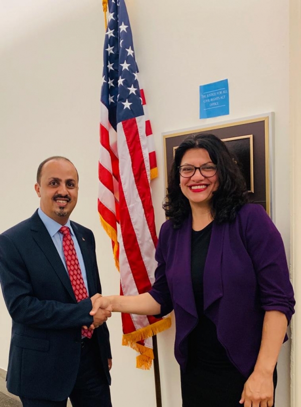 جاء ذلك خلال استقبالها، اليوم وزير الإعلام معمر الإرياني، في العاصمة الأمريكية واشنطن، حيث عبرت طليب عن دعمها الكامل لجهود تحقيق السلام في بلادنا، وإيقاف الحرب وإنهاء المعاناة الإنسانية.
