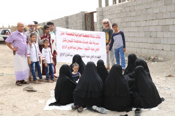نظم أولياء دم الشيخ السلفي "سمحان الراوي"، الذي اغتيل مطلع عام2016م، اليوم الأحد، وقفة احتجاجية، أمام الحكمة الجزائية في العاصمة المؤقتة عدن، للمطالبة بسرعة محاكمة المتهمين في اغتياله، وذلك عقب تسريب محضر التحقيقات مع المتهمين.