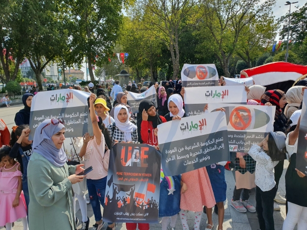 وطالب المحتجون الحكومة اليمنية بطرد الإمارات من اليمن، وقطع العلاقات الدبلوماسية معها باعتبارها "دولة معادية لليمن".