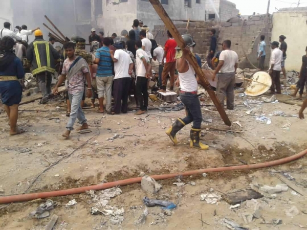 من جانبهم، قال شهود عيان إن مبنى بمحاذاة شارع جيزان بالمدينة تعرض لقصف يُعتقد أنه نفذ من جانب طيران التحالف، ما أدى إلى تدميره.