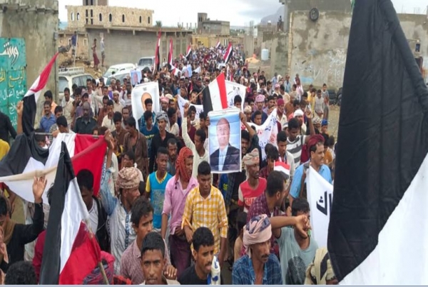 و ردد المشاركون في التظاهرة هتافات تساند السلطة المحلية وتطالب بطرد الإمارات من الجزيرة، معتبرين وجودها إحتلال.