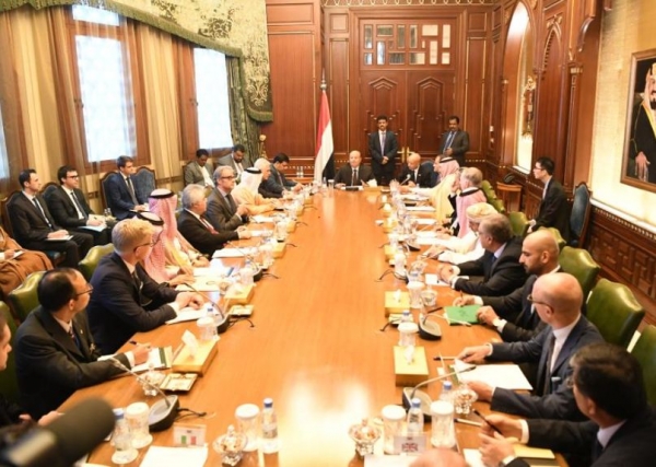 وقالت وكالة "سبأ" إن الرئيس التقى سفراء دول مجموعة العشرين، وأطلعهم على مجمل التطورات والتحديات التي تشهدها اليمن على مختلف المستويات ومنها ما يتصل باتفاق الرياض، الذي قال إنه "يؤسس لمرحلة جديدة من الأمن والاستقرار والسلام واستكمال التحرير في مواجهة قوى التمرد والانقلاب من المليشيات الحوثية الإيرانية".