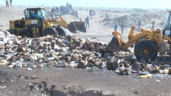 وقالت مصادر صحفية، ان عشرات الأطنان من "البقوليات وزيوت الطبخ والدقيق" منتهية الصلاحية تابعة لمنظمة الغذاء العالمي تم إتلافها في مدينة الحديدة.