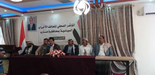 جاء ذلك في مؤتمر صحفي لتحالف الأحزاب السياسية بمأرب، والذي يضم كلا من: المؤتمر الشعبي العام والتجمع اليمني للإصلاح، والحزب الاشتراكي اليمني، والتنظيم الوحدوي الشعبي الناصري، وحزب الرشاد، وحزب البعث العربي الاشتراكي القومي، وذلك للوقوف على تطورات الأوضاع الجارية ومتطلبات المرحلة الراهنة سياسيا وعسكرياً وأمنياً وإعلاميا.