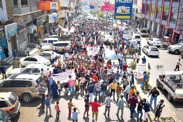 تظاهر المئات من الطلاب في مدينة تعز، اليوم الخميس، احتجاجًا على رفع الرسوم الدراسية بالجامعات الأهلية والخاصة.