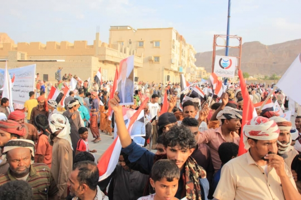 طالبت بتشغيل منشأة "بلحاف".. مظاهرة حاشدة بشبوة دعما للشرعية ورفضاً لمشاريع الفوضى والانفصال