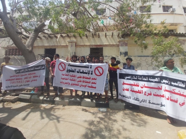 حضرموت: وقفة احتجاجية بالمكلا تنديداً بعمليات نهب الأراضي