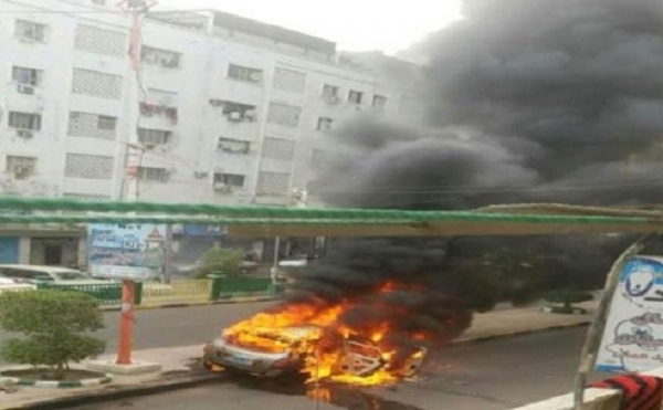 أقدم مجهولون، اليوم الأحد، على إضرام النار في سيارة مسؤول محلي في العاصمة المؤقتة عدن، جنوبي اليمن.