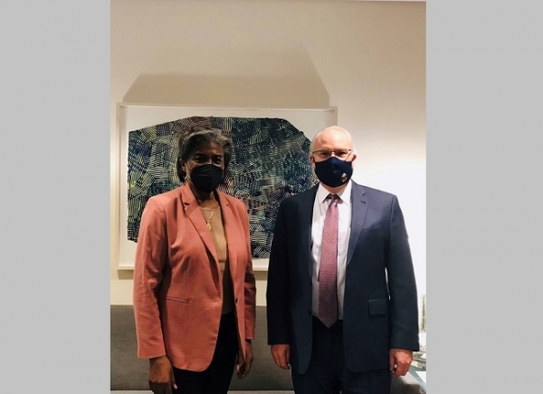 وقالت الوزارة في بلاغ على تويتر عقب لقاء جمع المبعوث الأمريكي الخاص لليمن، ليندركينغ وممثلة الولايات المتحدة لدى الأمم المتحدة، السفيرة ليندا توماس غرينفيلد، أن اللقاء "أكد على أهمية إجماع مجلس الأمن على إنهاء الحرب في اليمن".