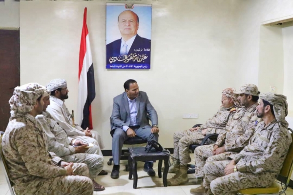 وفي اللقاء قدم المقدشي وبن عزيز شرحا موجزا عن سير العمليات العسكرية والقتالية والبطولات التي يسطرها أبطال الجيش الوطني في كافة الجبهات وما يتمتعون به من معنويات عالية واصرار على تطهير اليمن من مليشيا الحوثي الانقلابية المدعومة من إيران.