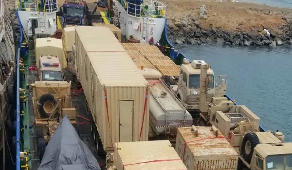 وأشار إلى أن حمولة السفينة من المستشفى الميداني تشمل (عربات الإسعافات، معدات طبية، أجهزة اتصالات، خيام، مطبخ ميداني، مغسلة ميدان، ملحقات مساندة فنية وأمنية).