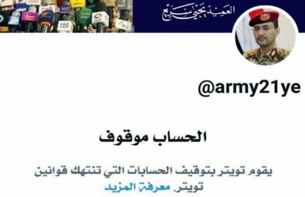 أوقف موقع تويتر مساء السبت، حساب المتحدث باسم قوات مليشيا الحوثي المدعومة من إيران، يحيى سريع.